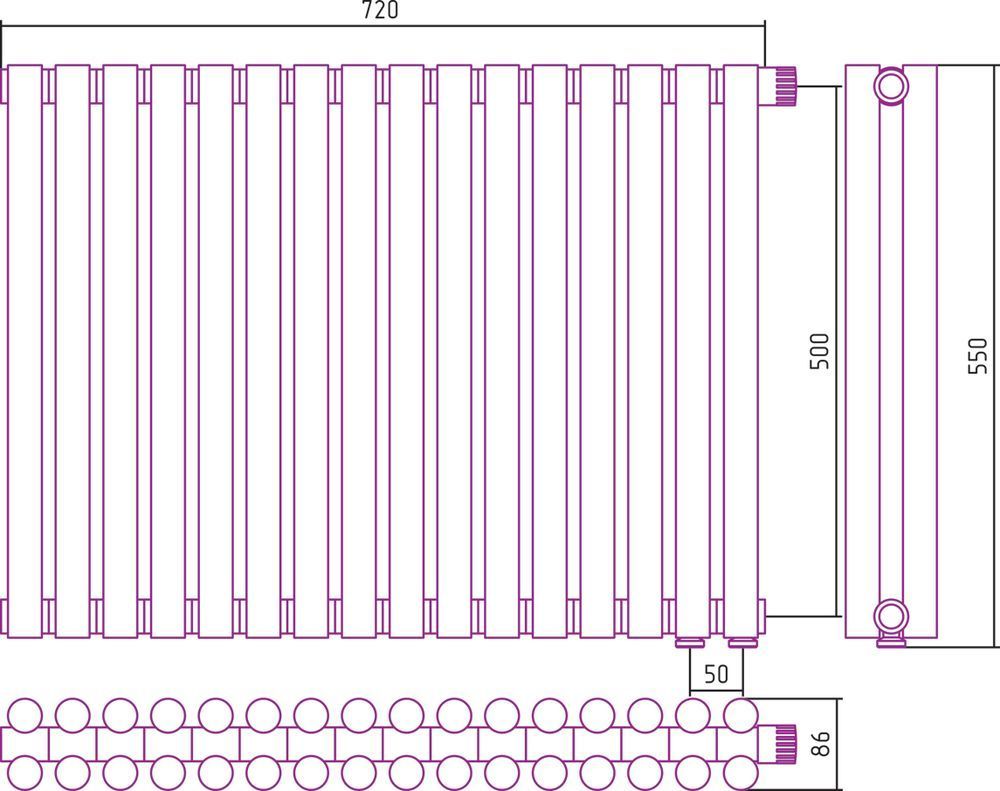 Радиатор Сунержа Эстет-11 720х500 мм (16 секций) 00-0312-5016 нижнее правое подключение