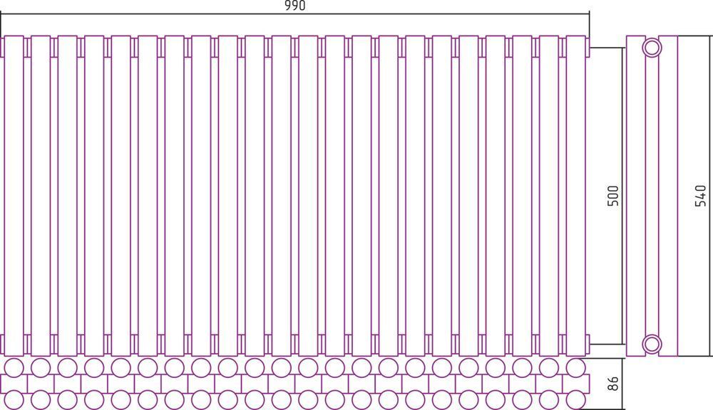 Радиатор Сунержа Эстет-11 990х500 мм (22 секции) 00-0302-5022 универсальное подключение