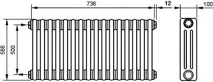 Радиатор Zehnder Charleston Retrofit 3057 760х570 мм (16 секций) боковое подключение