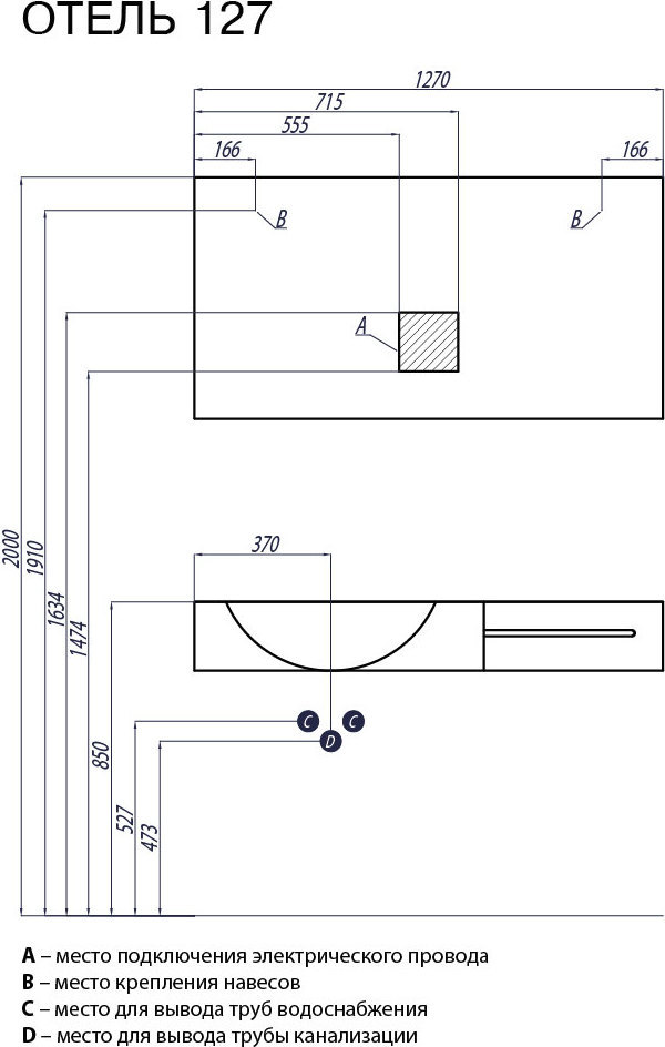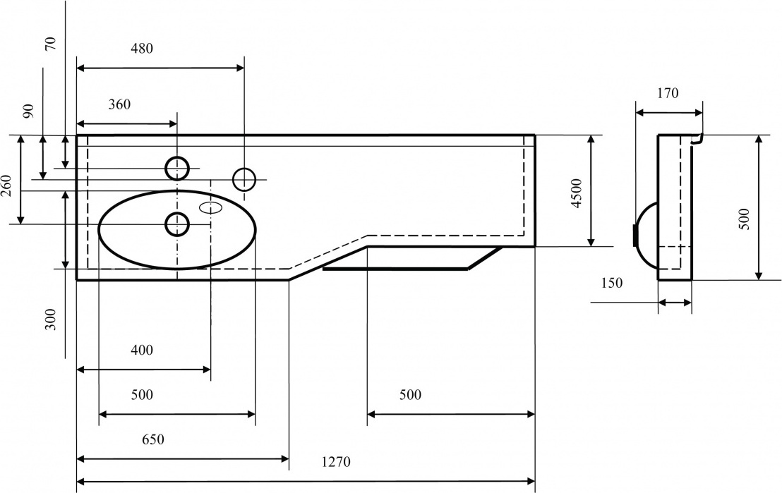 Раковина Отель 1270 мм, материал литьевой мрамор, цвет белый.