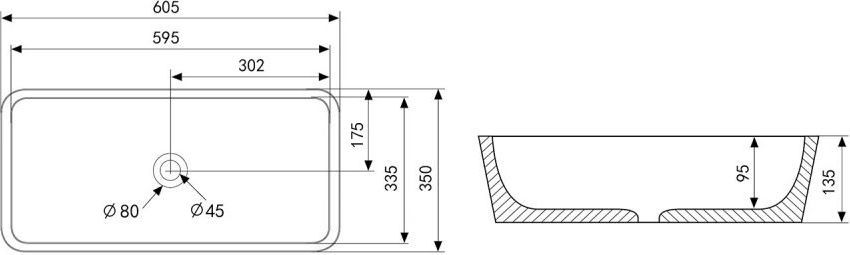 Раковина-чаша Abber Rechteck 60 см AC2204MW, цвет белый матовый.