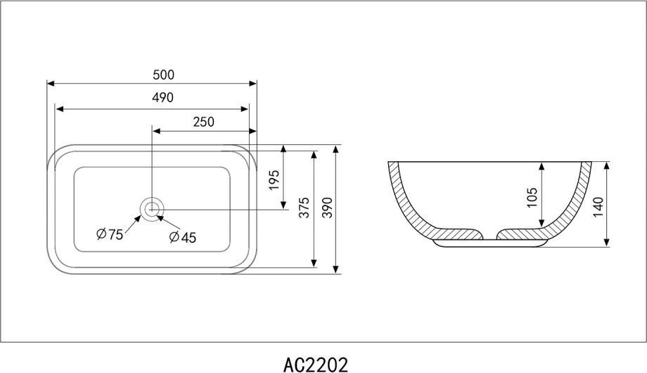 Раковина-чаша Abber Rechteck 50 см AC2202