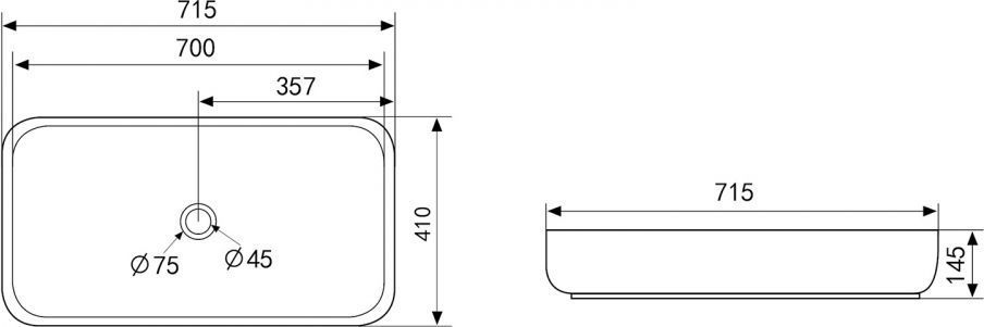 Раковина-чаша Abber Rechteck 71 см AC2210MG, серый матовый