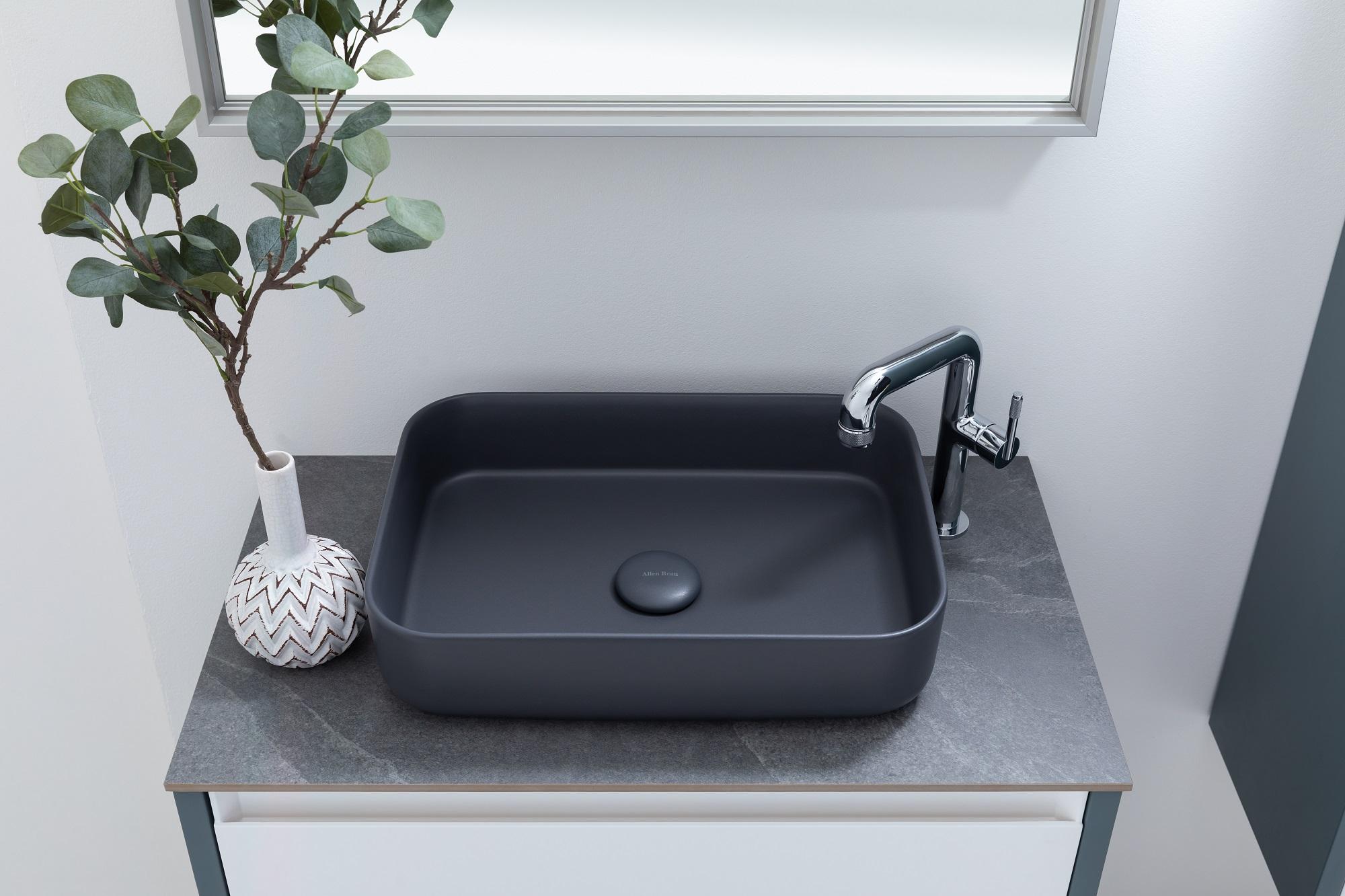 - Накладная раковина для ванной комнаты Allen Brau Fantasy Quad в цвете «Антрацит» шириной 50 см изготовлена из высококачественной керамики, что обеспечивает прочность, долговечность и элегантный внешний вид.
