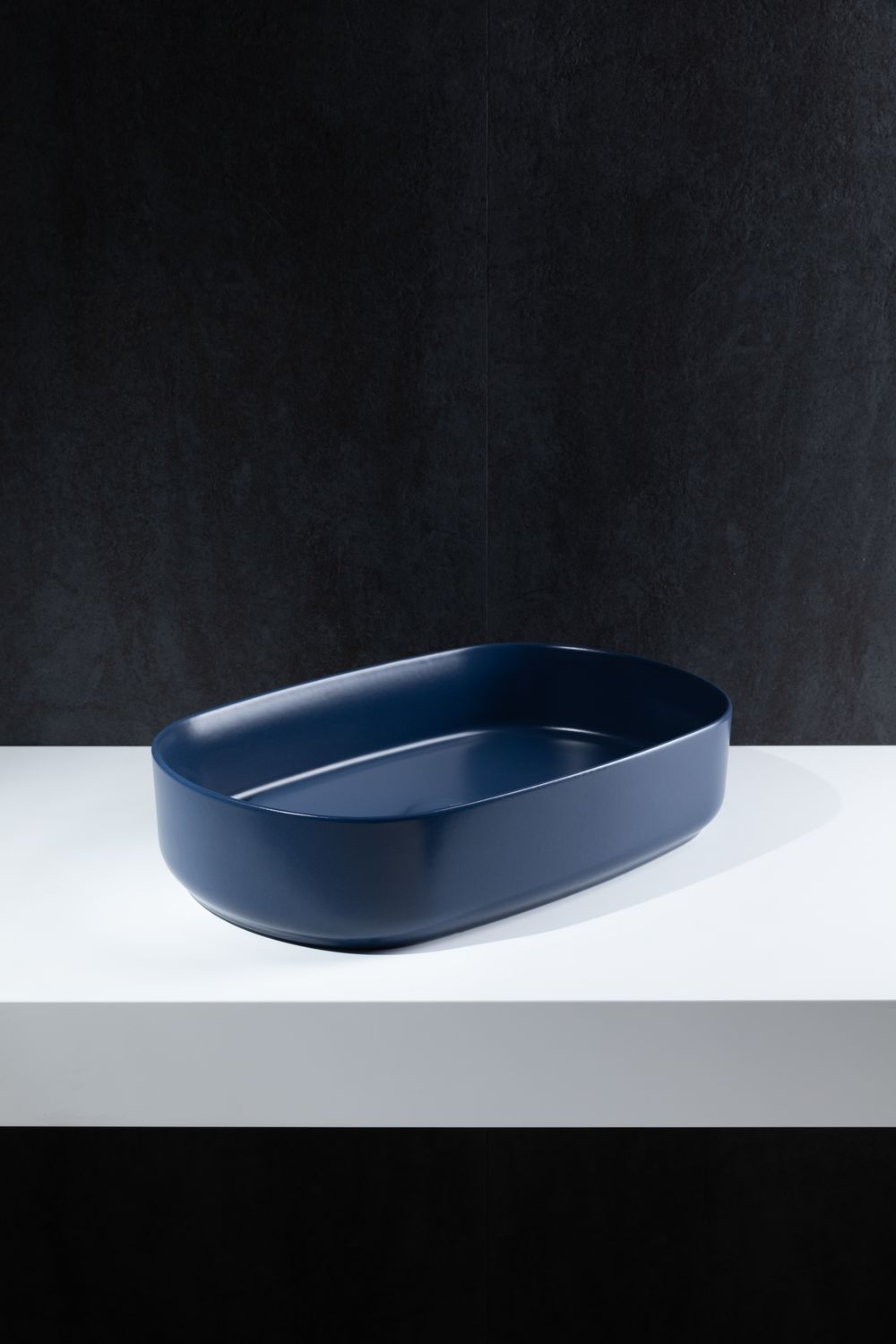 - Накладная раковина для ванной комнаты Allen Brau Fantasy Oval в цвете «Индиго» шириной 55 см изготовлена из прочной и эстетичной керамики, что придает ей изящный внешний вид и обеспечивает долговечность.