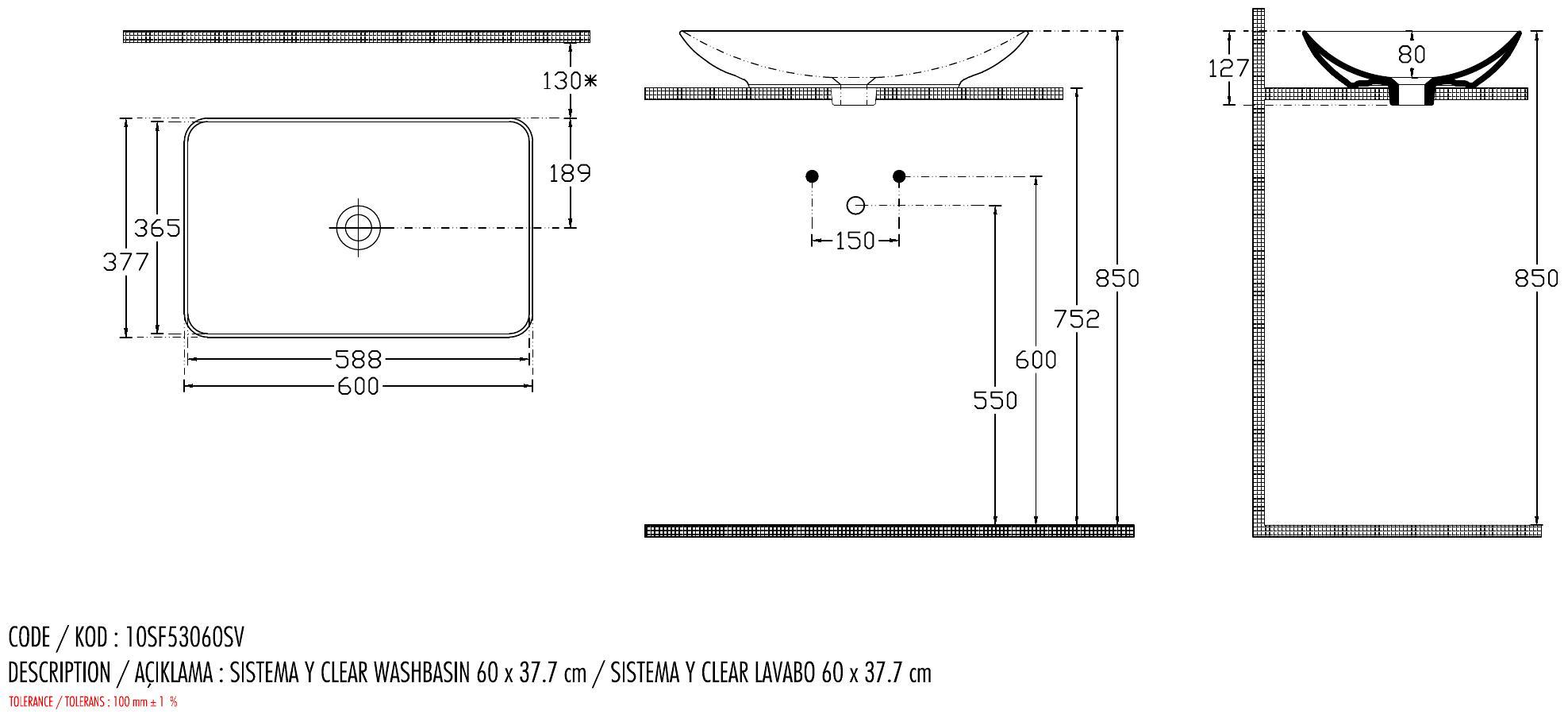 - Раковина не имеет отверстия для слива-перелива и не имеет отверстие под смеситель, что создает современный и минималистичный вид.