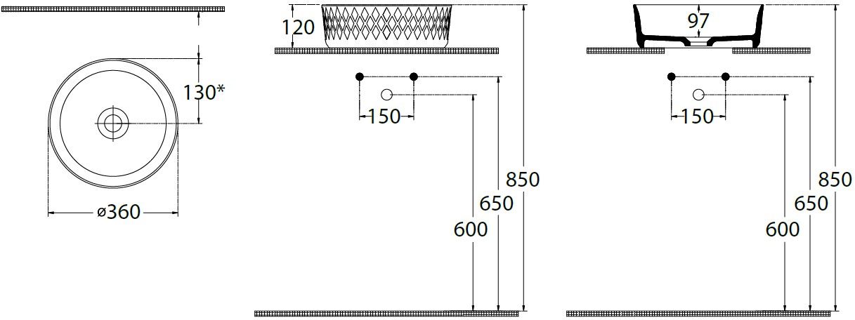- Раковина не имеет отверстия для перелива и отсутствует готовое отверстие под смеситель, что придает ей минималистичный и современный вид.