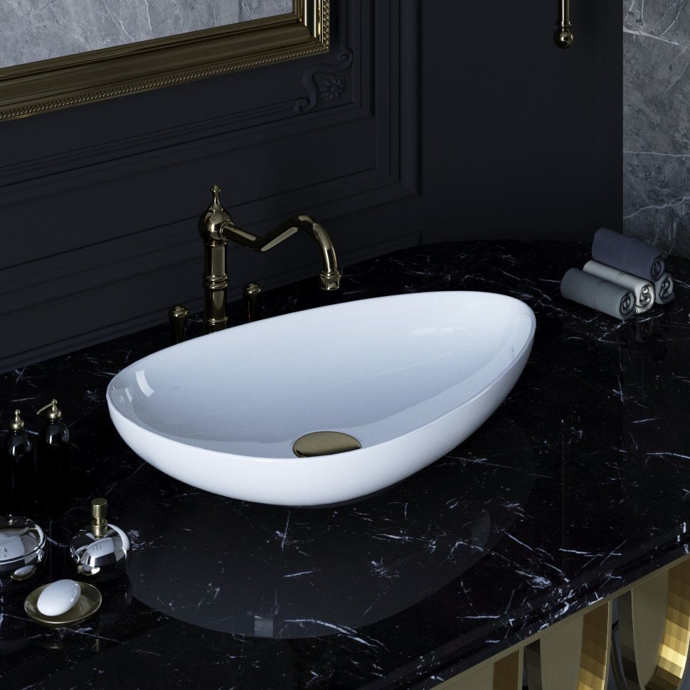 Раковина-чаша Ambassador Kingston 58 см 146T20001, слив с керамической заглушкой, цвет белый глянцевый.