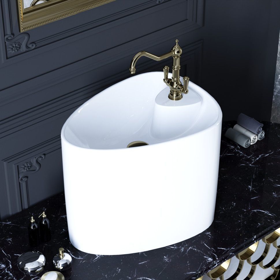 Раковина-чаша Ambassador Kingston 58 см 146T20003, отверстие под смеситель, слив с керамической заглушкой, цвет белый глянцевый.