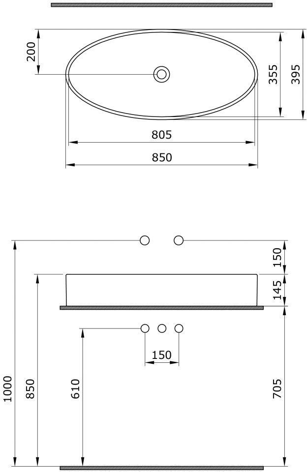 Раковина-чаша Ambassador Ritz 85 см 236T20001