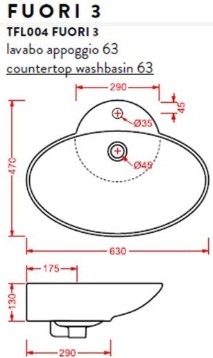 Раковина-чаша ArtCeram Washbasins Fuori 63 см TFL004 01 00 bi*1