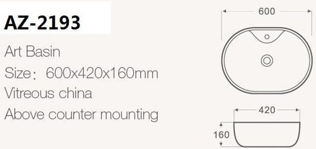 Раковина-чаша Azario AZ-2193 60 см. Цвет белый.
