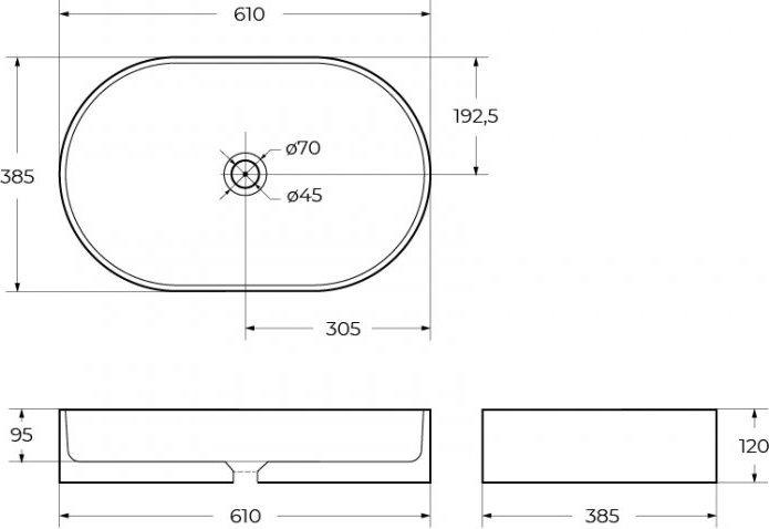 Раковина-чаша BelBagno 61 см BB1479, размер 610х385х120 мм, цвет белый.