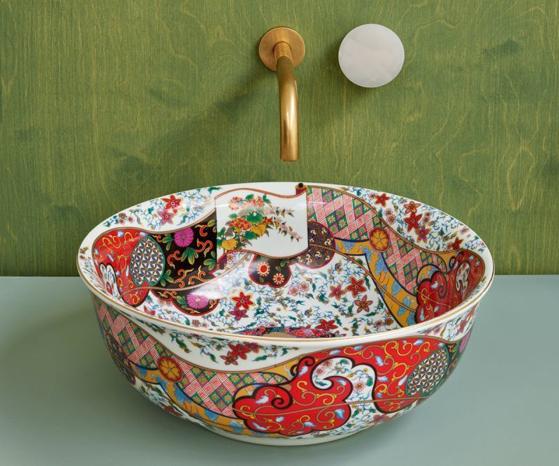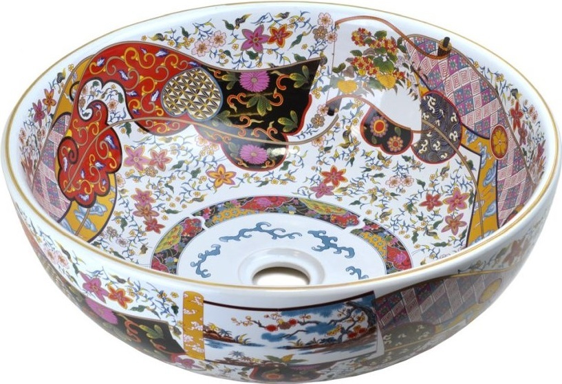 Раковина-чаша Bronze de Luxe Festival 40 см 2231, красная с орнаментом