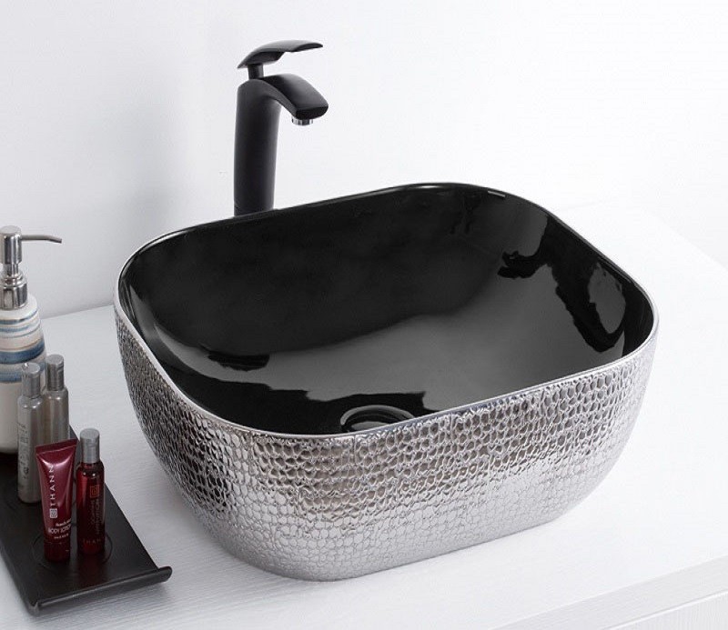 Раковина-чаша CeramaLux LuxeLine D1302H020, размер 505х405 мм, цвет черный/серый.