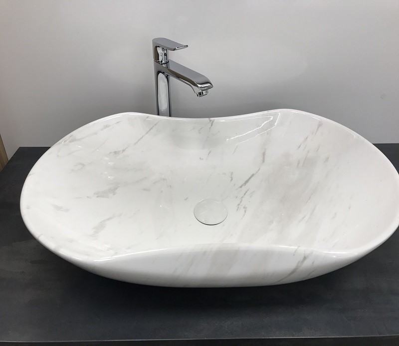 Раковина-чаша CeramaLux MNC 503H012, размер 665х410 мм, с донным клапаном, цвет под камень.
