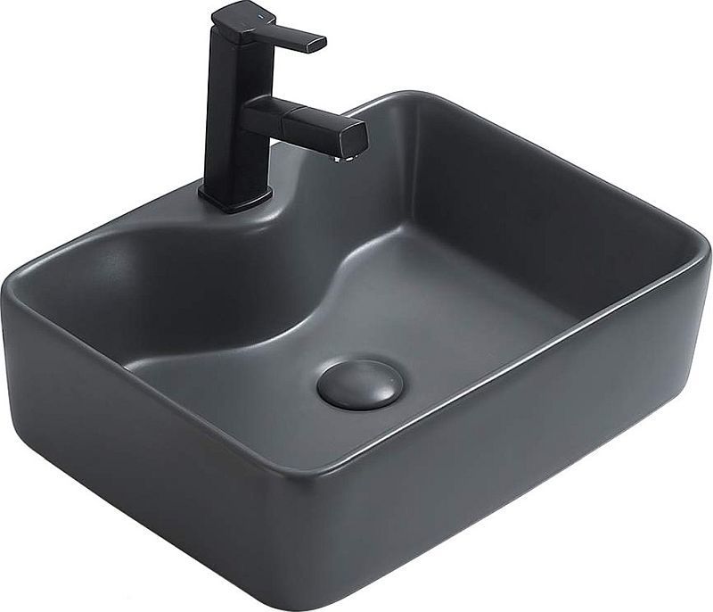 Раковина-чаша CeramaLux NC 7291MDH-2, размер 480х370 мм, с донным клапаном, цвет серый.