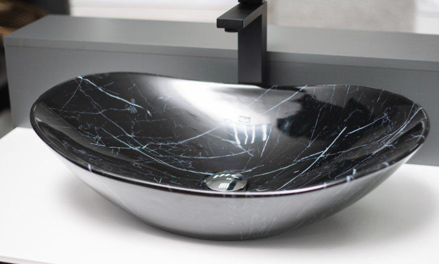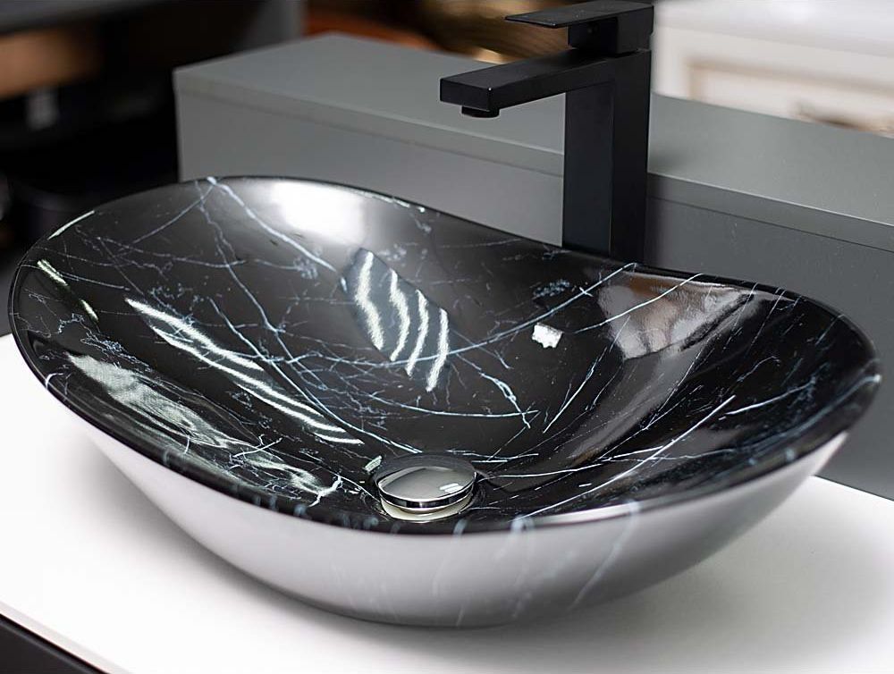 Раковина-чаша CeramaLux NC 7404BM, размер 605х360 мм, цвет черный мрамор.