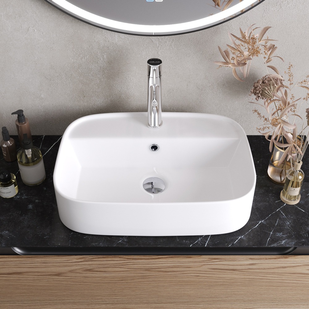 Раковина-чаша Cezares CZR-6616 с отверстием перелива, размер 555х390 мм, цвет белый. Донный клапан и сифон в комплект поставки не входят и приобретаются отдельно.