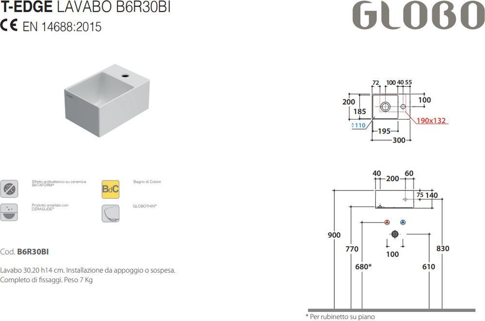 Раковина-чаша Globo T-Edge B6R30BI, размер 300х200 мм, цвет белый.
