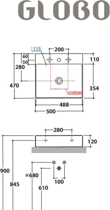 Раковина-чаша Globo T-Edge B6R51.BI*1, размер 500х470 мм, с отверстием под смеситель, цвет белый.