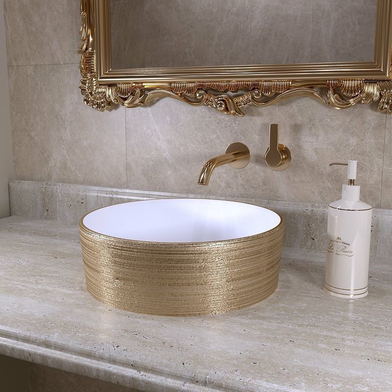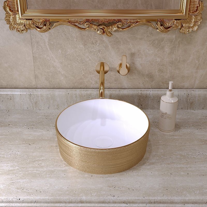 Раковина-чаша Grossman Color 35 см GR-5010GW, цвет золото/белый.