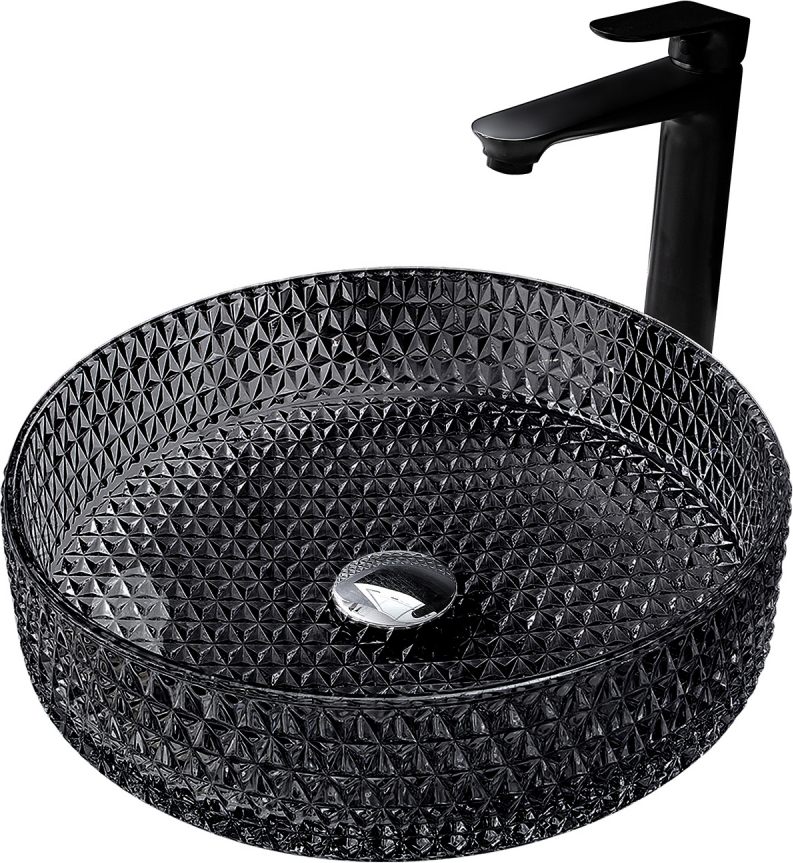Раковина-чаша прозрачная Abber Glas 39 см AK2301B, материал стекло, цвет чёрный.