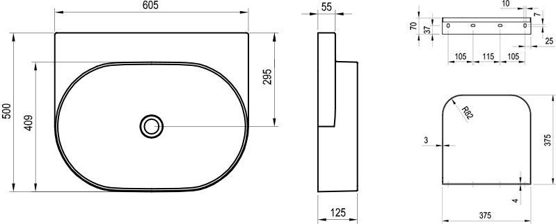 Раковина подвесная Ravak Yard, размер 605х500 мм. Цвет белый. Консоль приобретается отдельно.