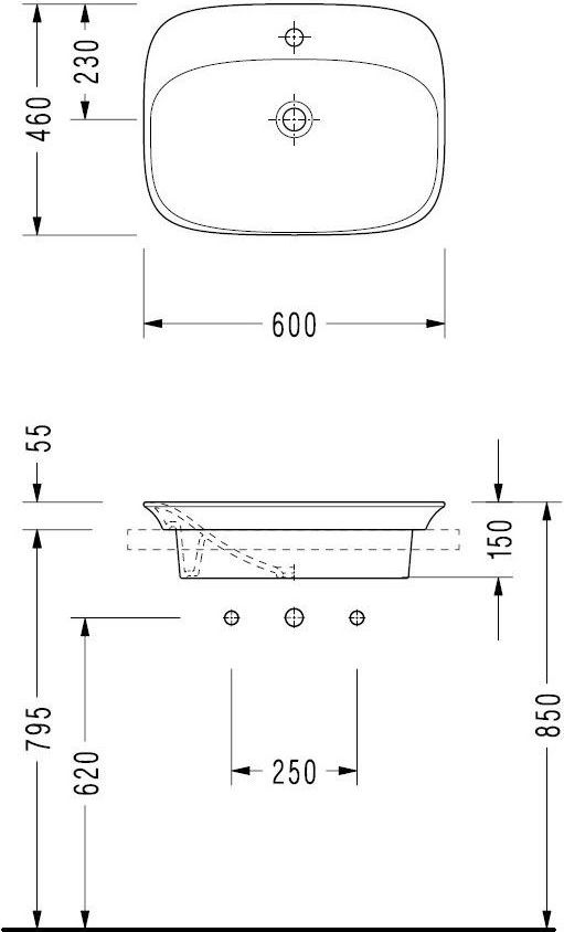Раковина врезная на столешницу Serel Hera HR30TXS110H, размер 600х460 мм. Цвет белый.