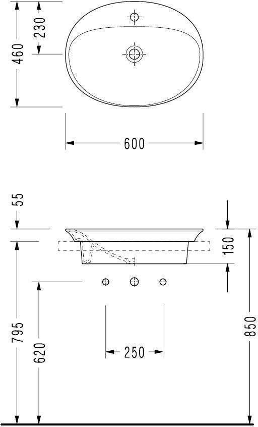 Раковина врезная на столешницу Serel Hera HR34TXS110H, размер 600х460 мм. Цвет белый.