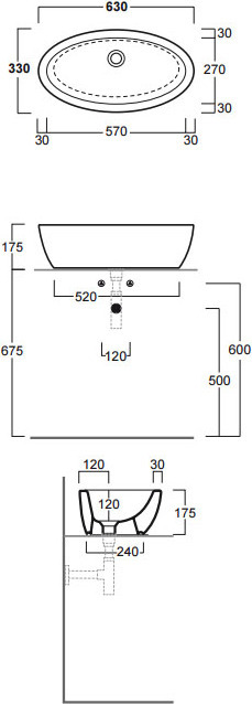 Раковина-чаша Simas Lft Spazio, размер 630х330 мм. Цвет белый.