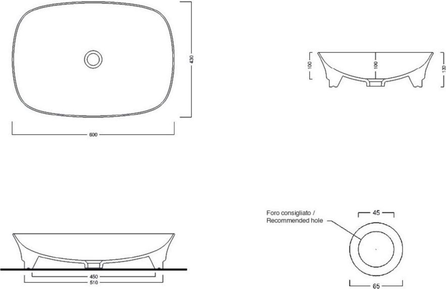 Раковина-чаша White Ceramic Idea 60 см W1010701, цвет белый глянцевый.