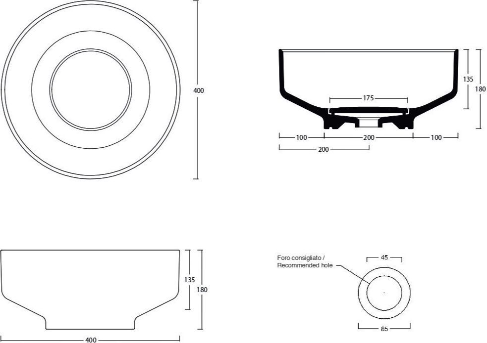 Раковина-чаша White Ceramic Was 40 см W100701, цвет белый глянцевый.