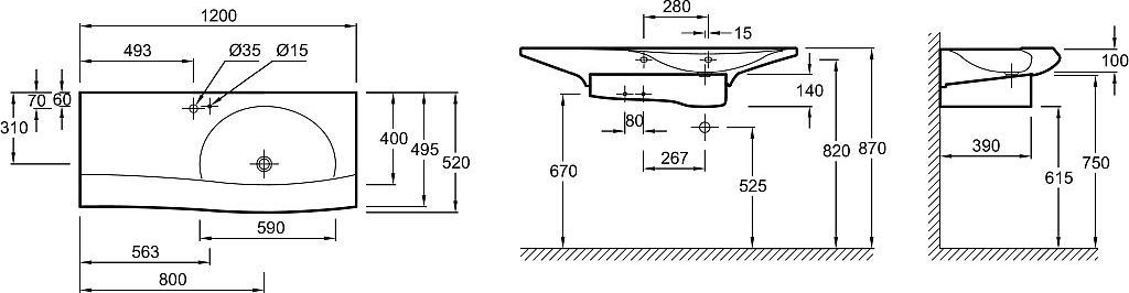 Раковина Jacob Delafon Stillness 1200х520 мм E1292-00, с переливом, с 1 отверстием для смесителя диаметром 35 мм и 1 отверстием диаметром 15 мм для ручки донного клапана, цвет - белый.