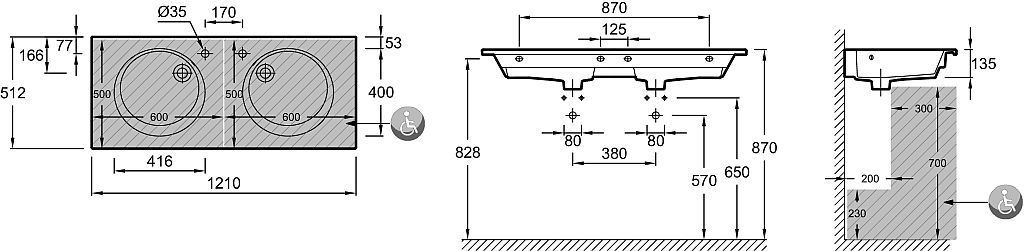 Раковина мебельная Jacob Delafon Odeon Rive Gauche 121 см EXAT112-Z-00