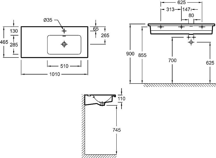 Раковина мебельная Jacob Delafon Vox 1010х465 мм EXAD112-Z-00, гладкая нижняя поверхность, с 1 отверстием для смесителя, цвет - белый.