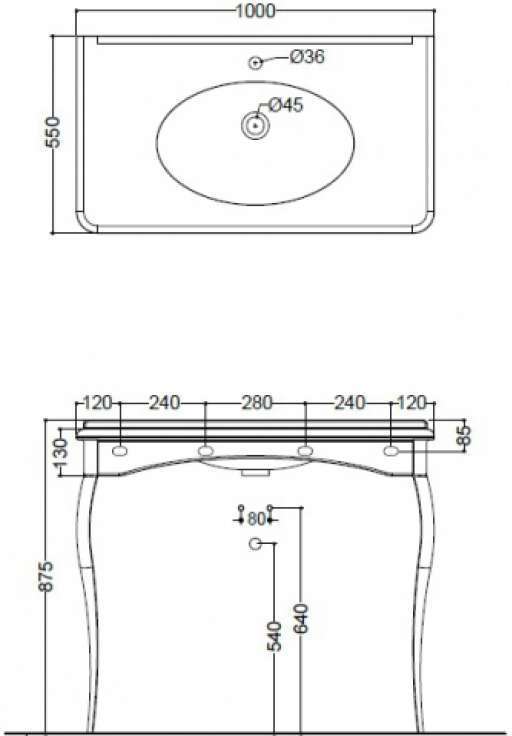 Раковина на ножках Kerasan Retro 100 см 1049K0 bi*1 cr legs