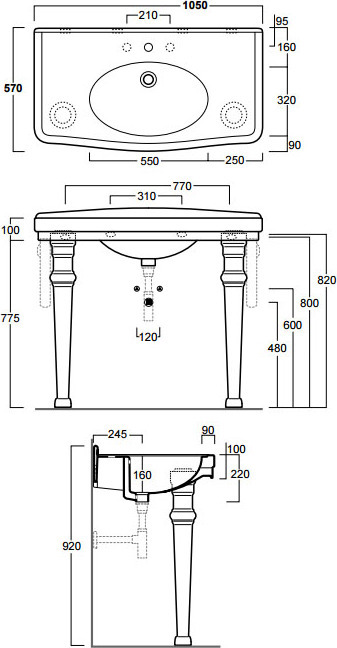 Раковина на ножках Simas Londra 105 см LO934bi*1