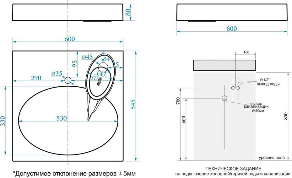 Раковина над стиральной машиной Azario Estet 60 см CS00082259