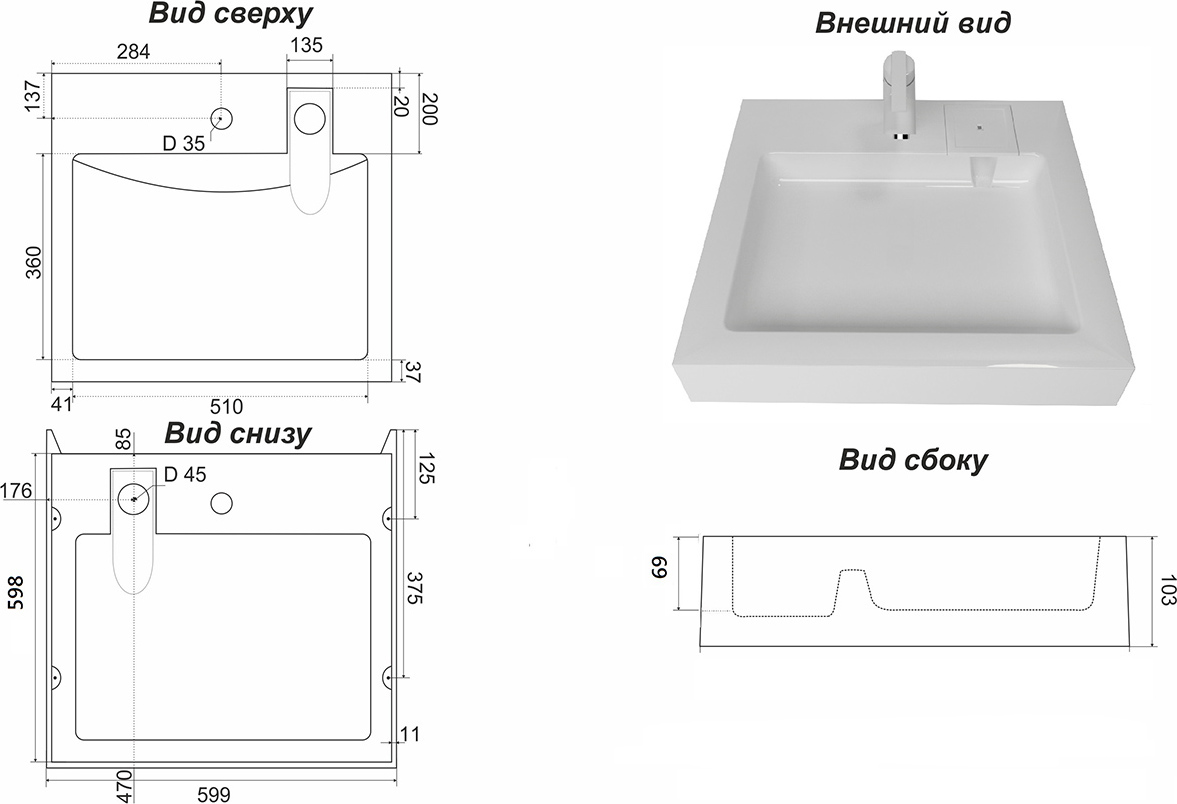 Раковина состоит из натурального молотого мрамора и полиэфирной смолы, покрывается специальным гелькоутом - полимером повышенной прочности и химической стойкости, марки ViaPal», который имеет сертификат для использования в медицинских учреждениях. Все раковины проходят термообработку в промышленной печи при температуре 80 °C, таким образом выводятся все вредные вещества. Каждая раковина доводится вручную и полируется, поэтому все изделия имеют безупречный внешний вид. Раковина комплектуется кронштейнами и сифоном.