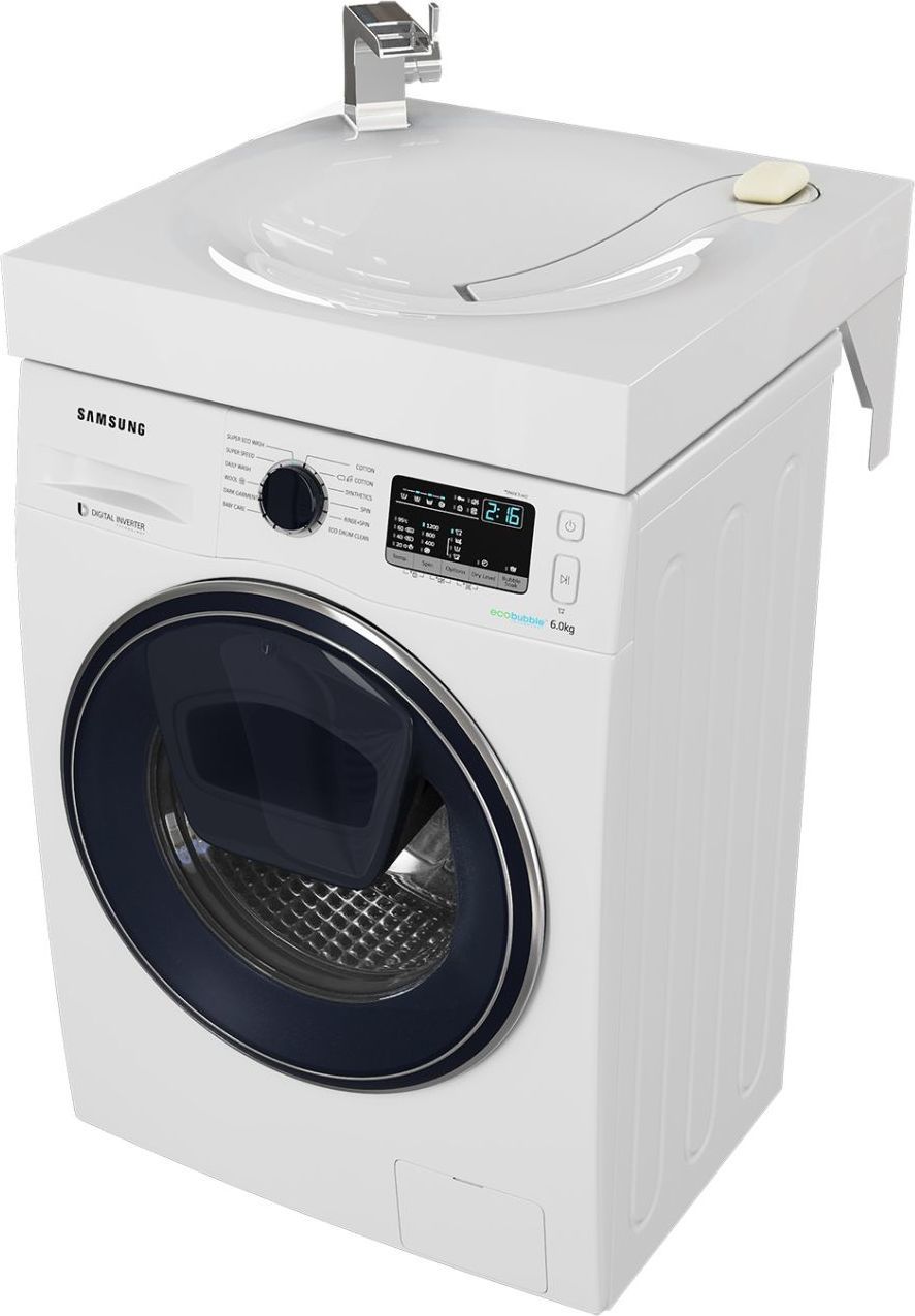 Раковина над стиральной машиной Mirsant Anna 60 см, материал литьевой мрамор, цвет белый.