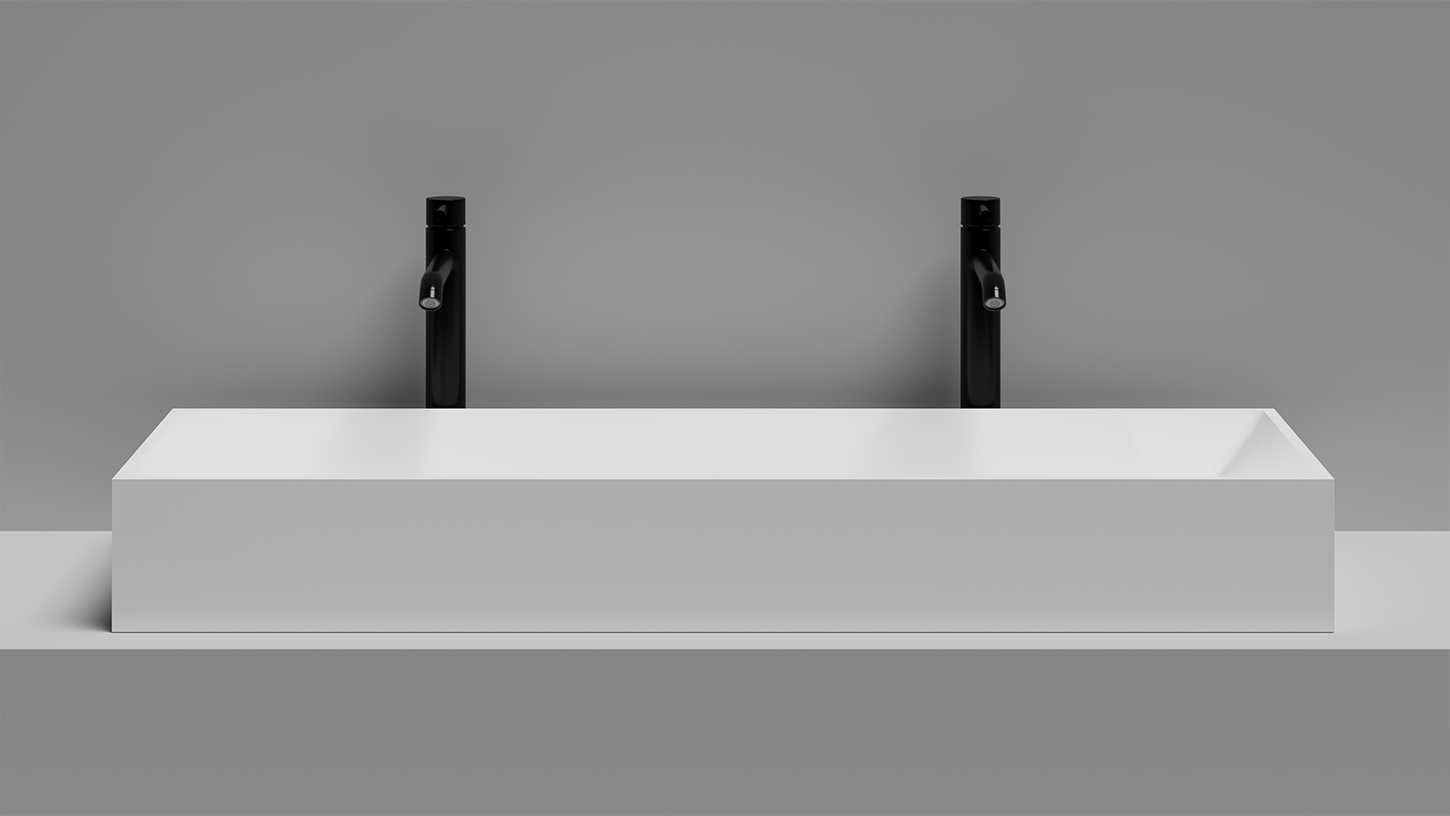 Удлинённую раковину SONATA можно разместить как накладную на тумбе DOMINO или столешнице COSTA. Модель также подходит для подвесной установки на анкерах.