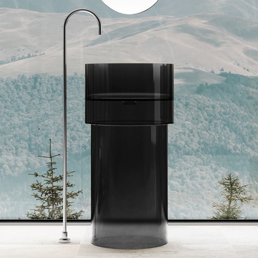 Раковина напольная прозрачная Abber Kristall 45 см AT2701Onyx-H с техническим отверстием для монтажа у стены, материал полиэфирная смола, цвет черный.