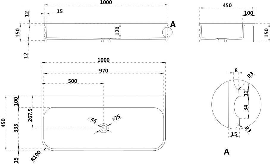 Раковина подвесная Abber Stein 100 см AS2651-1.0, материал искусственный камень, цвет белый матовый.