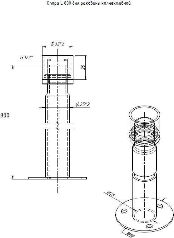 Раковина подвесная антивандальная Тругор L=1,2 м, цвет хром.