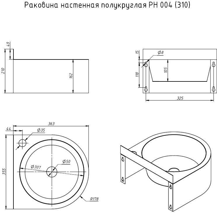 Раковина подвесная антивандальная Тругор РН 004, цвет хром.