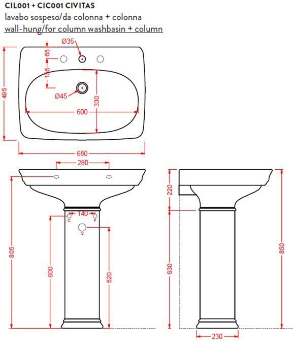 Раковина подвесная ArtCeram Civitas, размер 680х495 мм. Цвет серый.