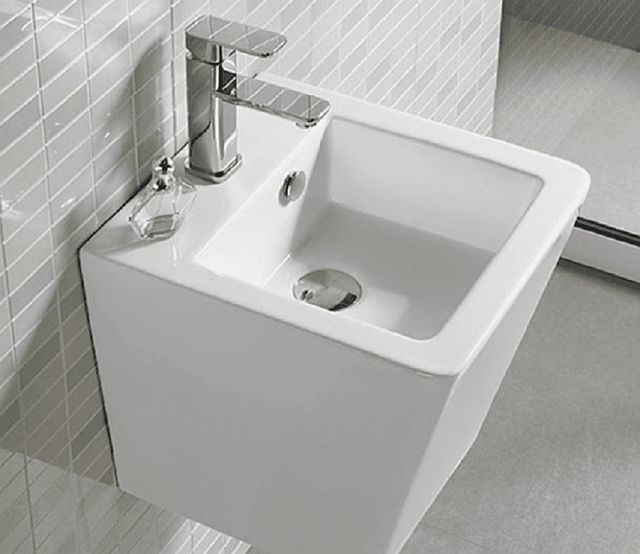 Раковина подвесная CeramaLux N 500V, размер 375х410 мм, со сливом-переливом и отверстием под смеситель, цвет белый.
