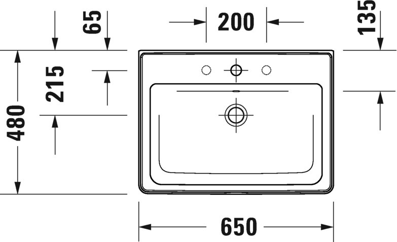 Раковина подвесная Duravit D-Neo 65х48 см 2367650000, с переливом, с плоскостью под смеситель, глазуровка снизу, цвет белый.