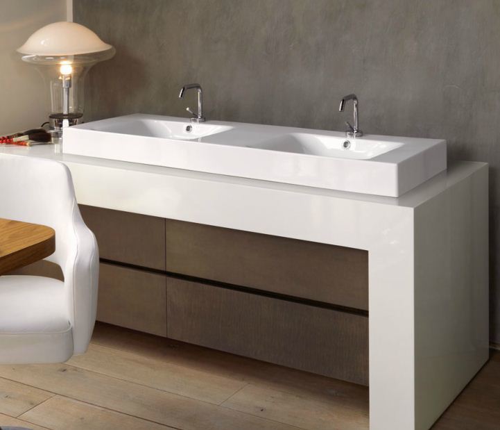 Раковина подвесная двойная Kerasan Cento 353601*1, размер 1400х450 мм. Цвет белый.
